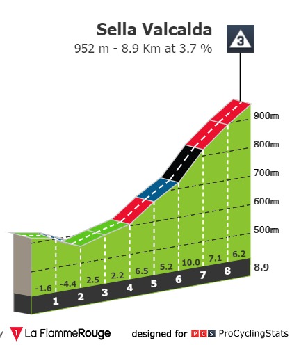 Gli ultimi km del Cima Sappada hanno buone pendenze ma poi c'è un tratto fino al traguardo pianeggiante o con poche pendenze. Con il doppio Grappa previsto il giorno dopo non mi aspetto granché dagli uomini di classifica.